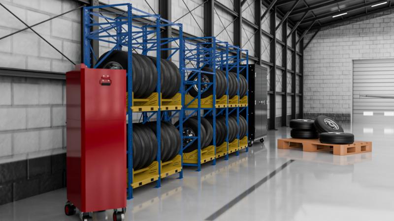 Tire Storage Kit Store a variety of car, truck and motorcycle tires, comes with easy access ramp for heavy tires. |
